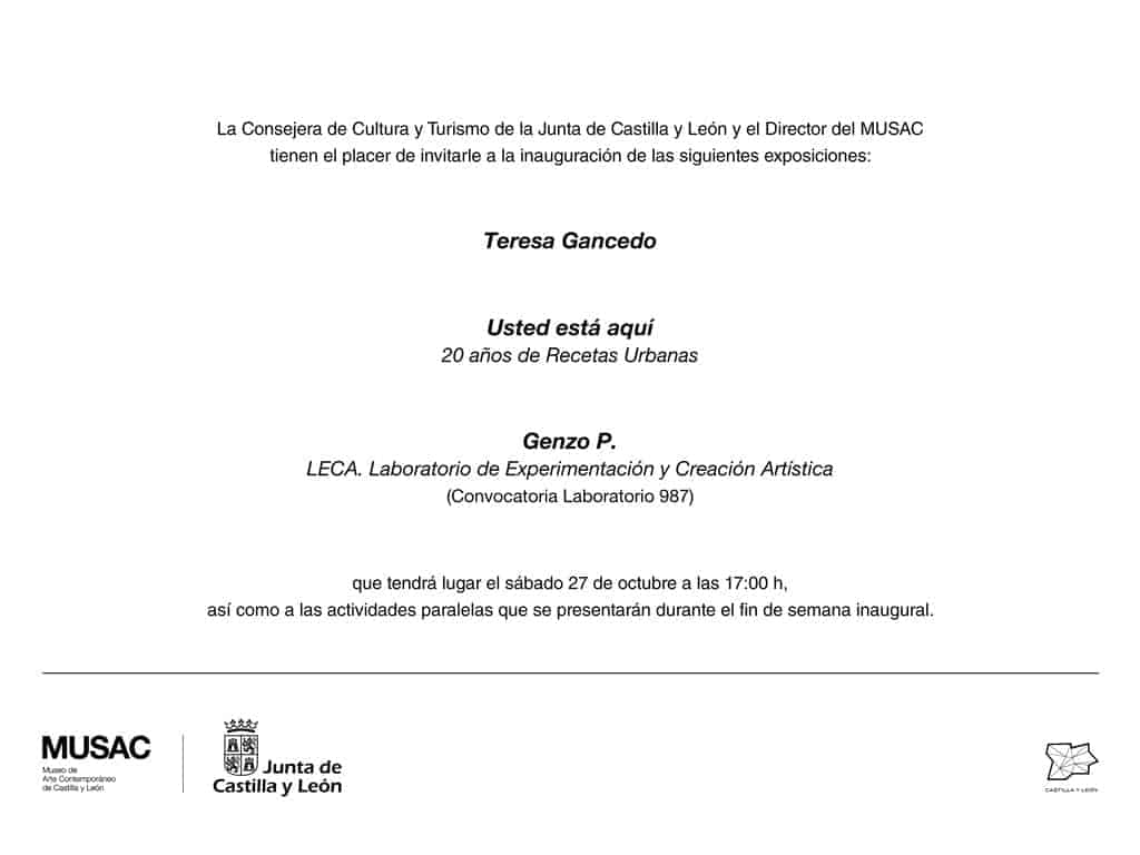El 27 de octubre de 2018 se inaugurará en el MUSAC (León) una retrospectiva de la pintora Teresa Gancedo, que mostrará su trayectoria desde los años setenta del pasado siglo hasta hoy, y que se podrá contemplar hasta el 13 de enero de 2019.