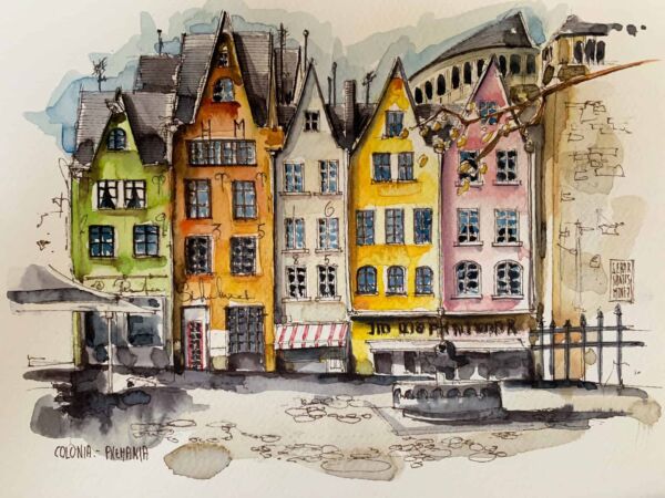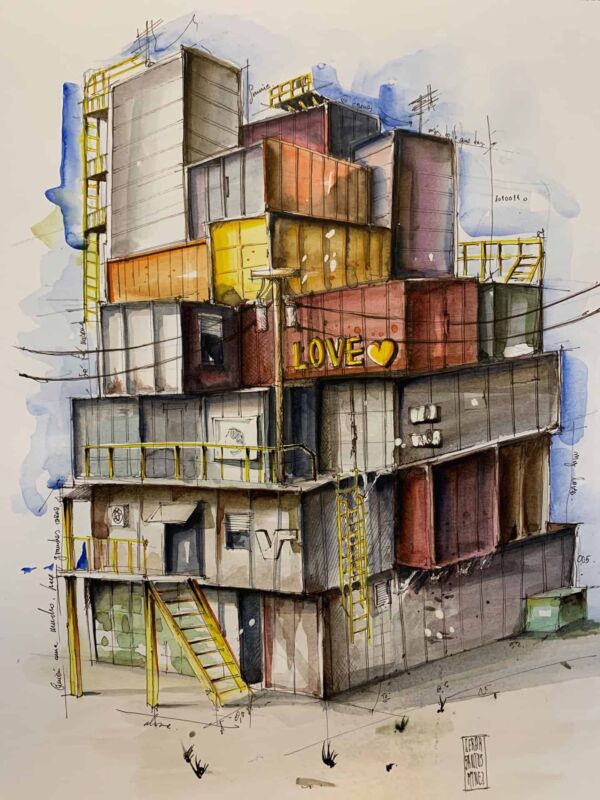 La muestra consta de un total de 14 obras de acuarela a dos tamaños con el título “Houses Collection”, con la idea de mostrar lo iguales y lo distintos que somos todos en nuestras formas de vivir en diferentes lugares del mundo.