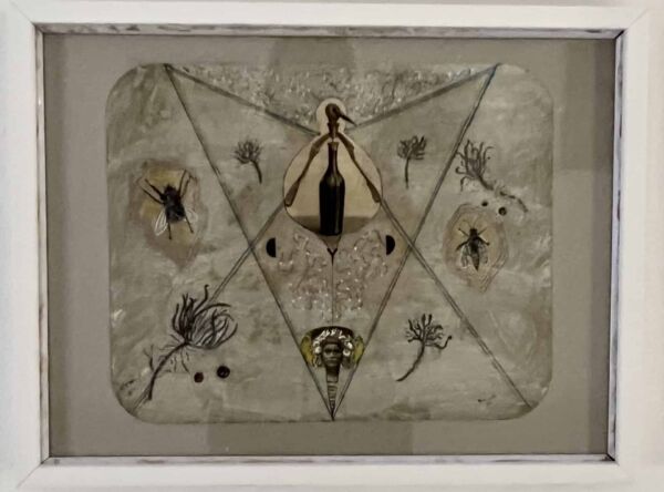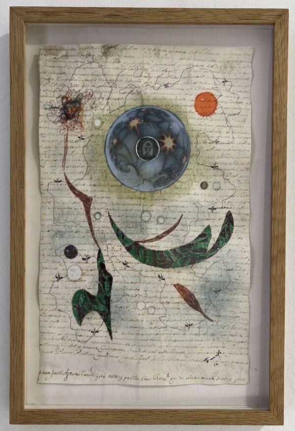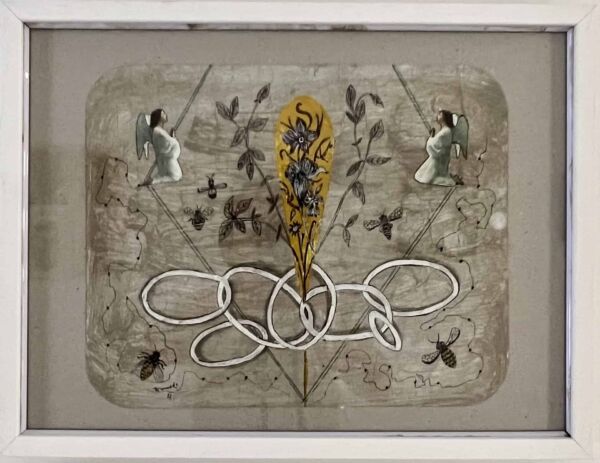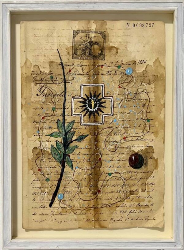 Las piezas de esta exposición se organizan incorporando collages o dibujos y empleando recursos plásticos del simbolismo y del misticismo, ahondando siempre en su memoria personal a través de signos y símbolos tales como imágenes religiosas, populares o de la historia del arte, elementos vegetales, flores, pájaros y peces –a veces incorporando imágenes y objetos encontrados integrándolos en las obras y con los que fragua un universo creativo tan personal como universal y tan sencillo como poderoso, logrando así que el misticismo y ascetismo de su obra se acompañe de sensualidad y hedonismo y adquiriendo con todo ello una libertad y personalidad que siempre han estado patentes a lo largo de toda su trayectoria.