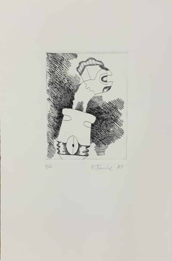 Grabado al aguafuerte y resina tamaño de la plancha 15,5 x 12 cm Estampado sobre papel Gvarro Numerado, firmado y fechado por el artista. P/A ( Prueba de Autor)