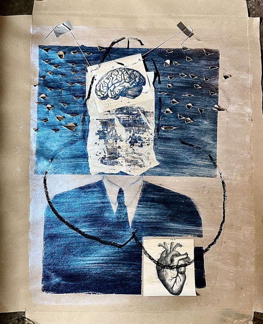 V-Mourelo_EMOJI_mixta-oleo-collage-sobre-lienzo_60x30cm
