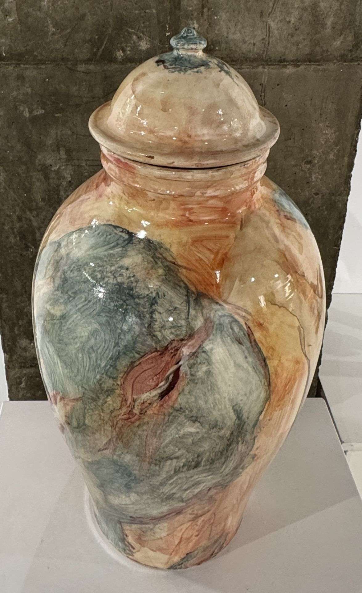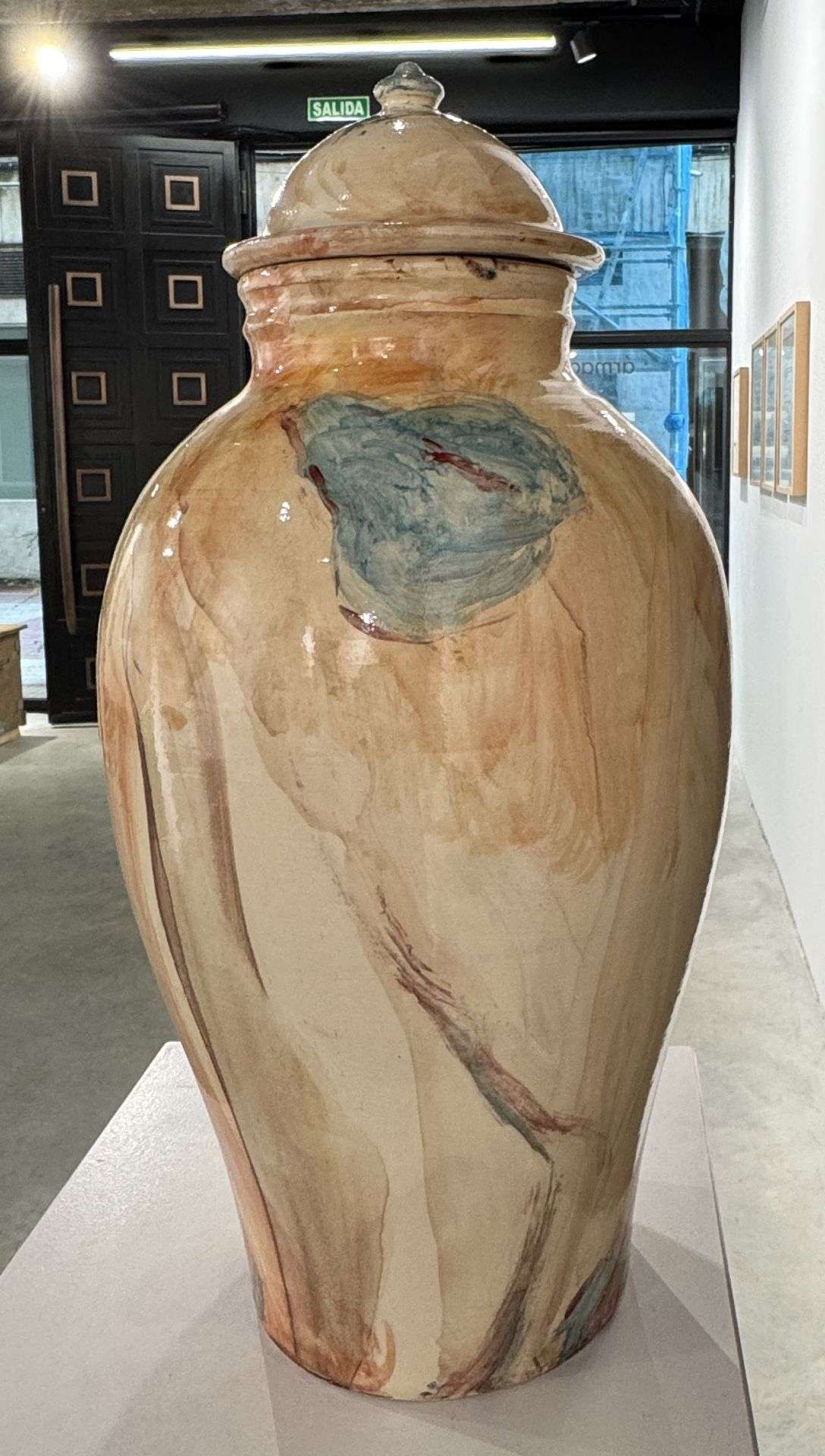 Esta pieza forma parte de la exposición El Hospital y el sinsonte, aprender a volar. Se trata de una cerámica tradicional (loza) esmaltada por Javier Fernández de Molina. El pájaro, el sinsonte, emerge entre las expresivas y extensas pinceladas de color en relación con el poema creado en diálogo con Antonio Gamoneda.